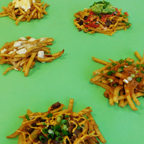 This method helps to remove excess starch from the potatoes, allowing them to really crisp. After soaking, dry the potatoes thoroughly with a kitchen towel, toss with a bit of oil, and bake (400° for 30 minutes, flipped half way through).